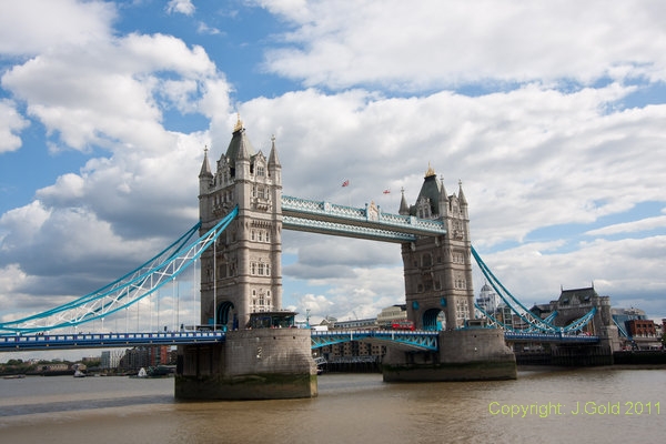 Tower Bridge from the Tower of London wall, North Bank of the River of course.